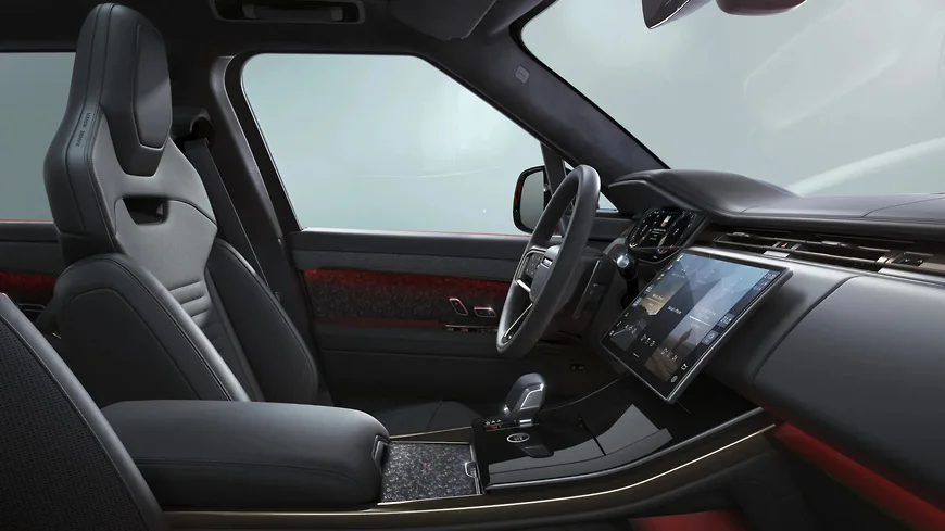Salon hissəsində Range Rover Sport SV modelindən götürülmüş qara Windsor dəri üzlüklü idman oturacaqları quraşdırılıb. İnteryer döymə karbon elementləri, işıqlı qapı astanaları və mərkəzi konsolda “Twenty” loqosu ilə tamamlanır. Tavan isə qara zamşa ilə işlənib.